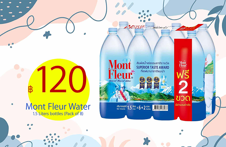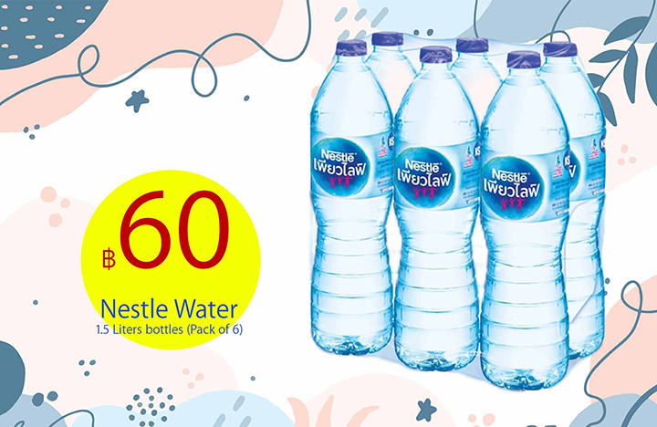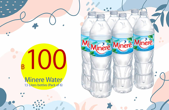 คุณสามารถเลือกน้ำดื่มคุณภาพจากแบรนด์ชั้นนำหลากหลาย เช่น น้ำดื่มธรรมดาอย่าง เนสเล่ คริสตัล น้ำสิงห์ หรือ น้ำแร่อย่าง มิเนเร่ มองต์เฟลอ เอเวียง โดยแพ็คน้ำดื่มที่คุณเลือกนั้น จะถูกส่งตรงถึงหน้าห้องอย่างรวดเร็ว และ สะดวกสบาย คุณเพียงแค่ยกเข้าห้องด้วยตนเอง